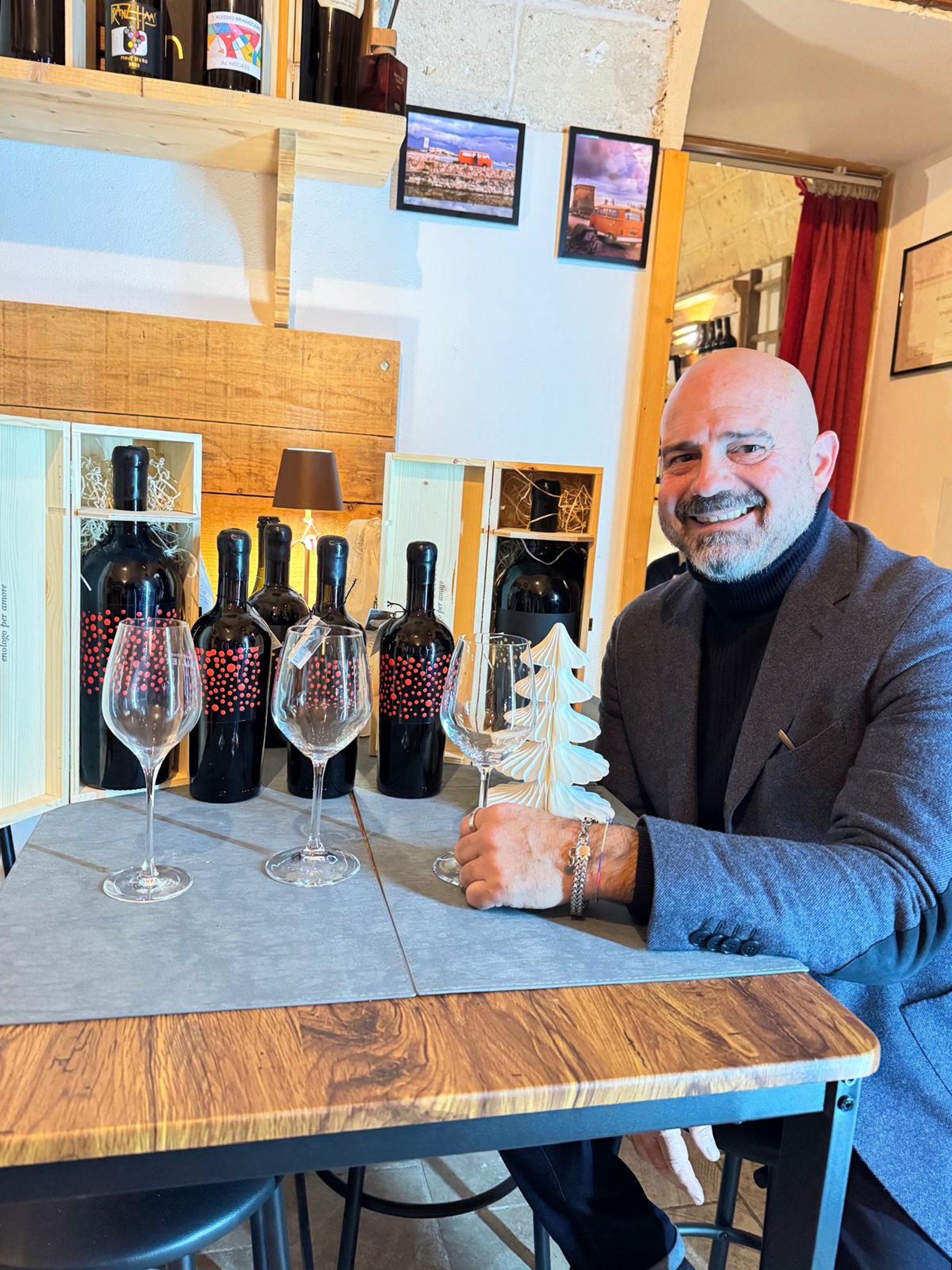 La Vineria n.02 è il luogo dove Gianluca accoglie ogni ospite con passione, creando un’esperienza che unisce calici, storie e convivialità.